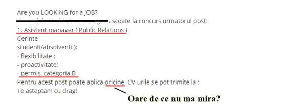 La o simplă căutare pe platformele dedicate de tipul bestjobs.ro sau ejobs.ro aflăm că șirul de anunțuri de recrutare penibile din publicitate, comunicare și marketing este aparent infinit.