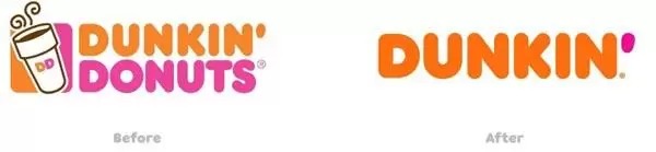 An example here would be Dunkin’ Donuts – they have recently changed their name to Dunkin’, as well as some elements pertaining to visual identity.