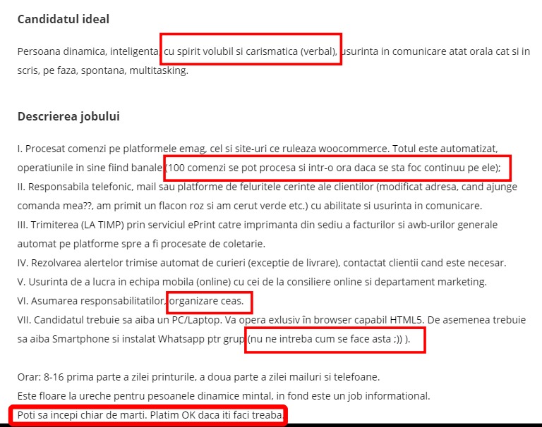 Am scris mai pe larg despre acest fenomen în recrutare și aici, pentru cei interesați. În fond, în multe dintre cazuri, apelativele de mai sus doar descriu frumos adevărata cerință – angajăm fomiști și/sau sclavi fără pretenții.